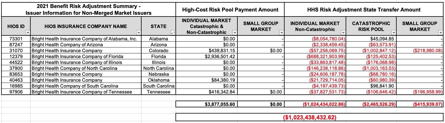 It appears that Bright had to pay out over a billion dollars in Risk Adjustment payments last year alone.