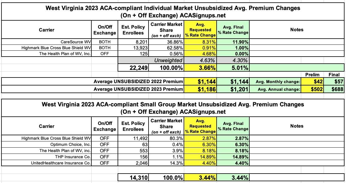 West Virginia: Final avg. 2023 #ACA rate changes: +5.0%