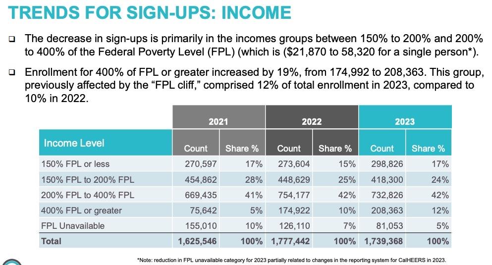 There's also some interesting tidbits of info in the full March 2023 CoveredCA Executive Director's Report: