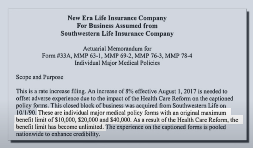 But you know what those same pre-ACA policies did often have? Annual and Lifetime Limits on claims, known as the "Maximum BENEFIT Limit." That means that many individual market healthcare policies put a hard cap on how much they would pay in medical claims: