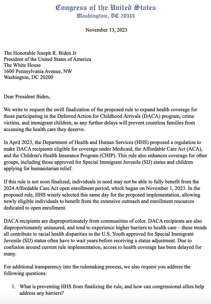 My colleagues & I are calling on @POTUS to finalize a rule to expand healthcare for DACA recipients. The time to enact this policy is now. pic.twitter.com/3erPsfhefJ