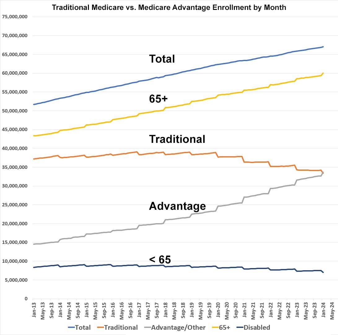 - Enrollees 65+ broke 60 million for what I'm assuming is the first time (60,000,994, up 589,857 from December)