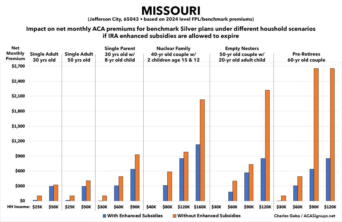 That's the macro level, however. As I did a couple of years ago when the subsidies were originally at risk of expiring in 2023, I decided to run the numbers myself to get an idea of just how much enrollees real-world health insurance premiums would go up in the event the ARPA/IRA subsidies are indeed allowed to expire at the end of next year.