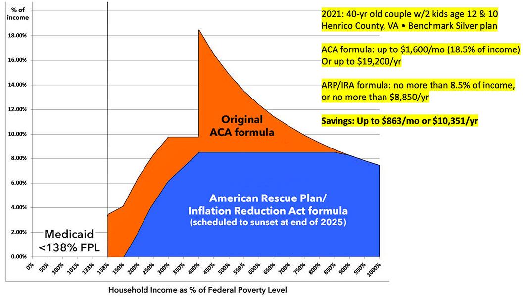 So, in 2021, the Democratics in Congress made the premium subsidies significantly more generous, while also expanding them so that NO ONE has to pay more than a maximum of 8.5% of their household income in premiums. The Inflation Reduction Act extended these enhanced subsidies, but only through the end of 2025.