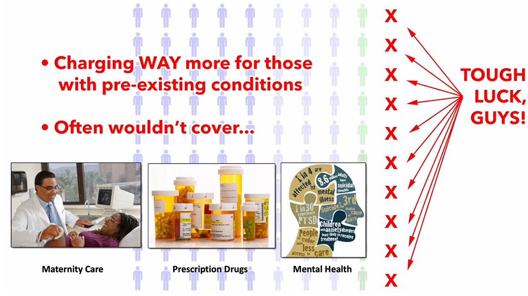 The biggest issue with individual market coverage prior to the ACA was that insurance carriers could cherry pick who they'd allow to become enrollees, what they'd be covered for, and how much of the claims they felt like paying for, if anything.