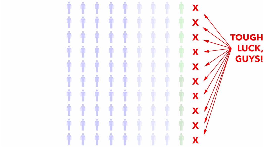 As noted above, in theory this would reduce the costs for the other 90% of the population by around 2/3. Voila! Problem solved, right?