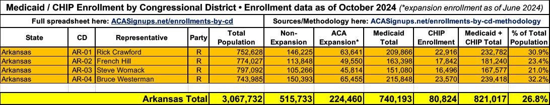 In all cases, the total Medicaid & CHIP enrollment data is as of October 2024 via the Centers for Medicare & Medicaid Services (CMS) prior to the Trump Admin taking it over.