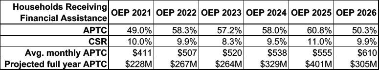 - Peak effectuated enrollments dropped by nearly 11,000 between 2025 and 2026 due to federal policy changes like the end of enhanced tax credits.