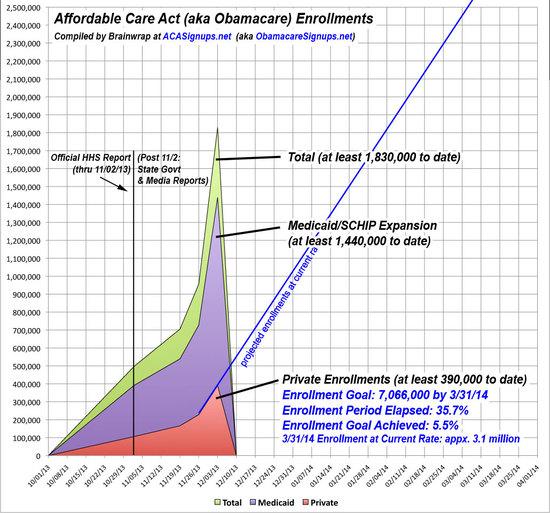 I also wasn't planning on launching the new version of ACASignups.net until January 1st, but given this morning's announcement that the Federal healthcare exchange (Healthcare.Gov) has topped 1.1 million enrollments (h/t to David S. for the heads up!)--which in turn brings the overall total of private plan enrollments to over 2 million--I decided to go ahead and launch it a bit earlier than expected.