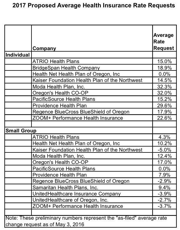 Some states make it next to impossible to track down this info. Others hand it to you on a silver plate. And then there are states like Oregon, who provide the average rate hike requests in a simple, easy format, but don't necessarily include the market share of those companies, making it difficult to compile a weighted average: