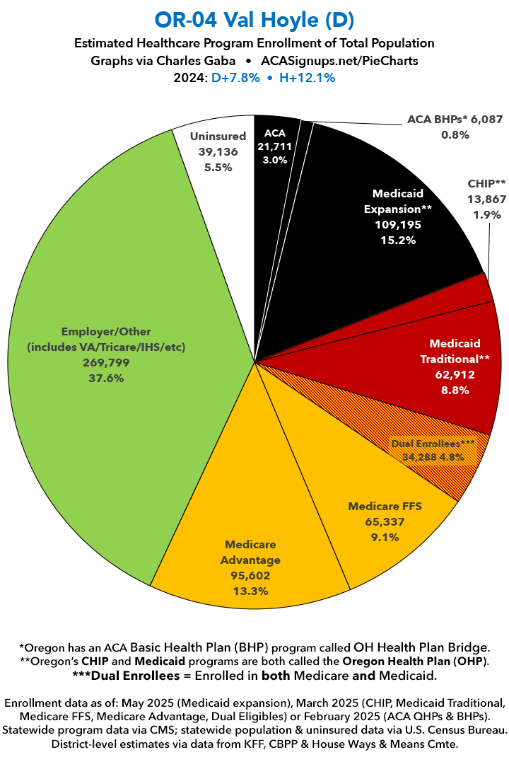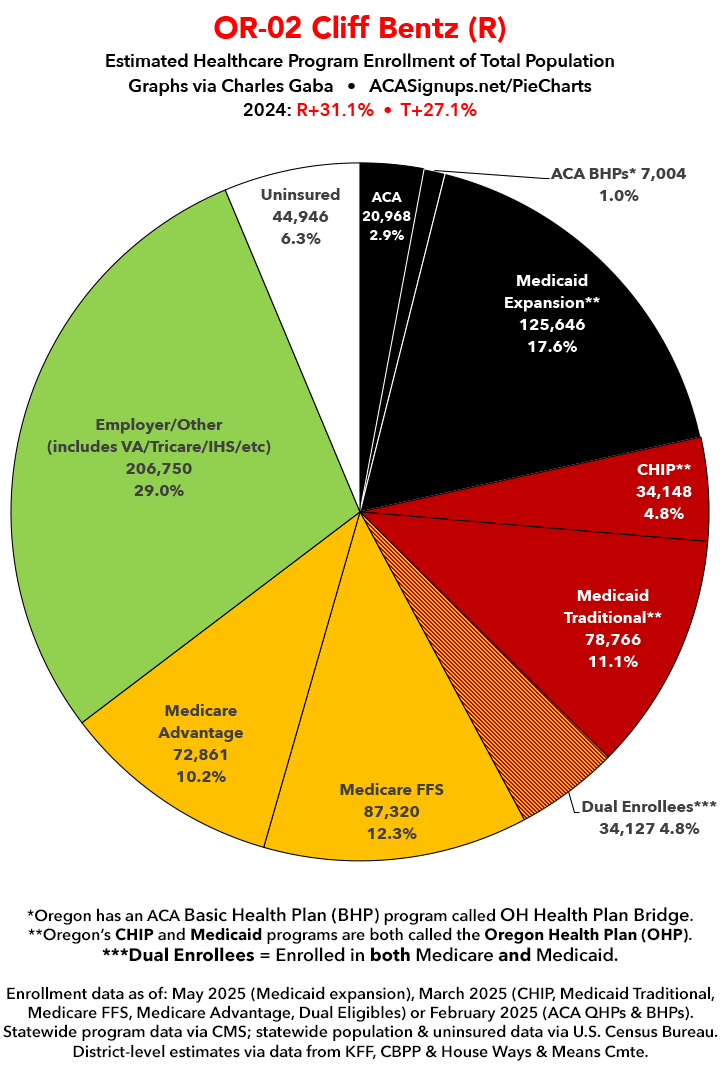 UPDATE 7/10/25: I've updated the web versions of the graphics with the most up-to-date enrollment data I have access to. The black sections w/the ⚠️ symbol are those most at risk of losing healthcare coverage due to H.R. 1, the "One Big Beautiful Bill Act" (aka the #MAGAMurderBill).