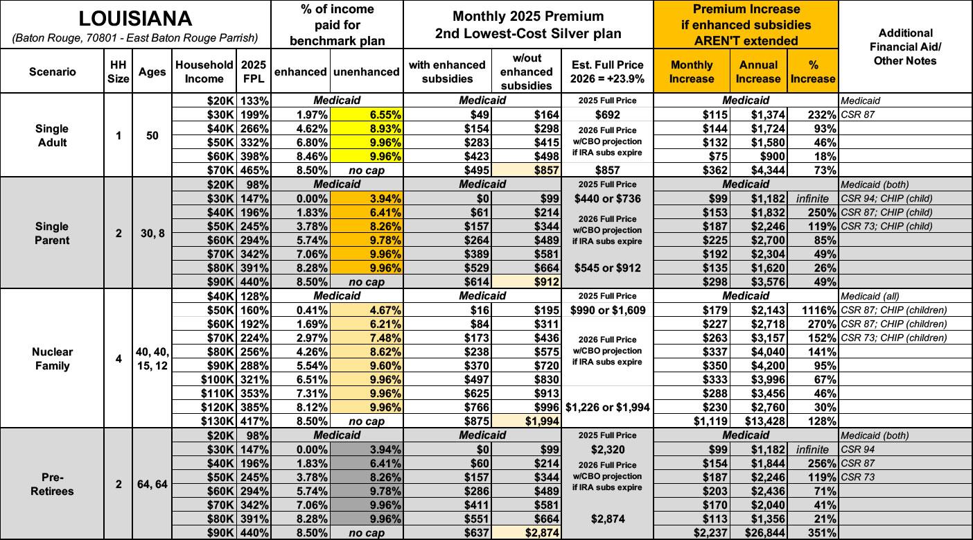 How much more will ~286,000 LOUISIANA residents pay if the improved #ACA subsidies expire? (updated)
