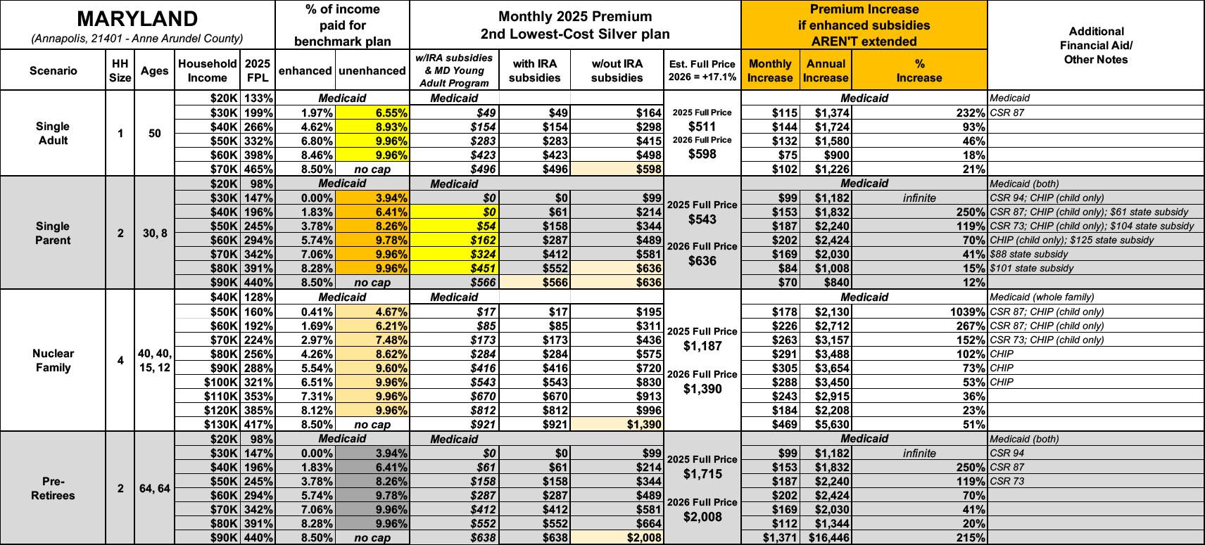 NOTE: Maryland has their own state-based supplemental subsidies which help reduce premiums for young adults only; these may or may not continue going forward.