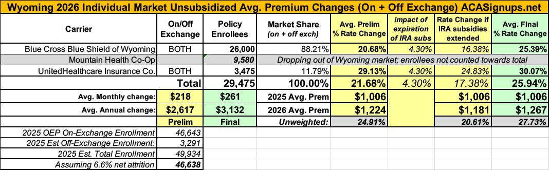 In Wyoming specifically, all of this will result in average gross premiums hikes of 25.9%.