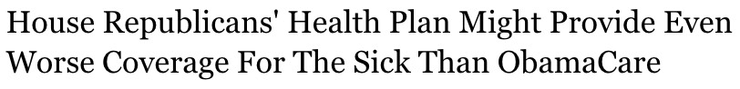 That's the subheadline of Jonathan Cohn & Jeffrey Young's story this morning about the kind-of, sort-of "replacement plan" for the ACA which Paul Ryan and the House Republicans have finally come up with, more than 6 years after the ACA was signed into law:
