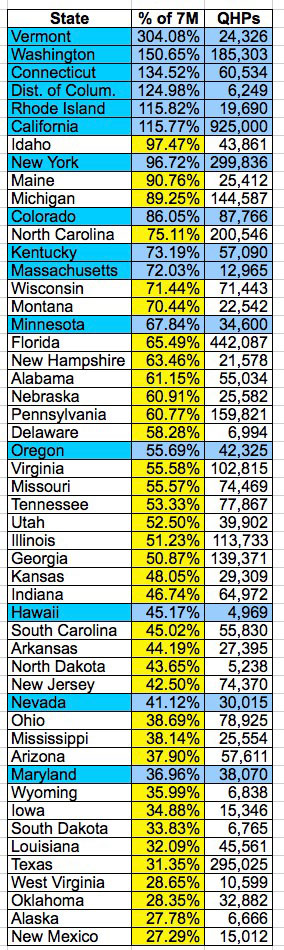 --Vermont is crushing everyone else, with more than 300% of their fair share of the 7 million figure enrolled