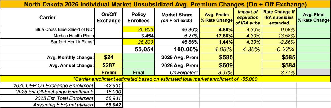 UPDATE 10/28/25: The North Dakota Insurance Dept. has published their final 2026 individual & small group market filing decisions: