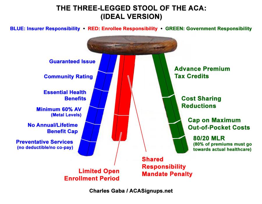 Once again, here's what the "3-Legged Stool" was supposed to look like under the Affordable Care Act: